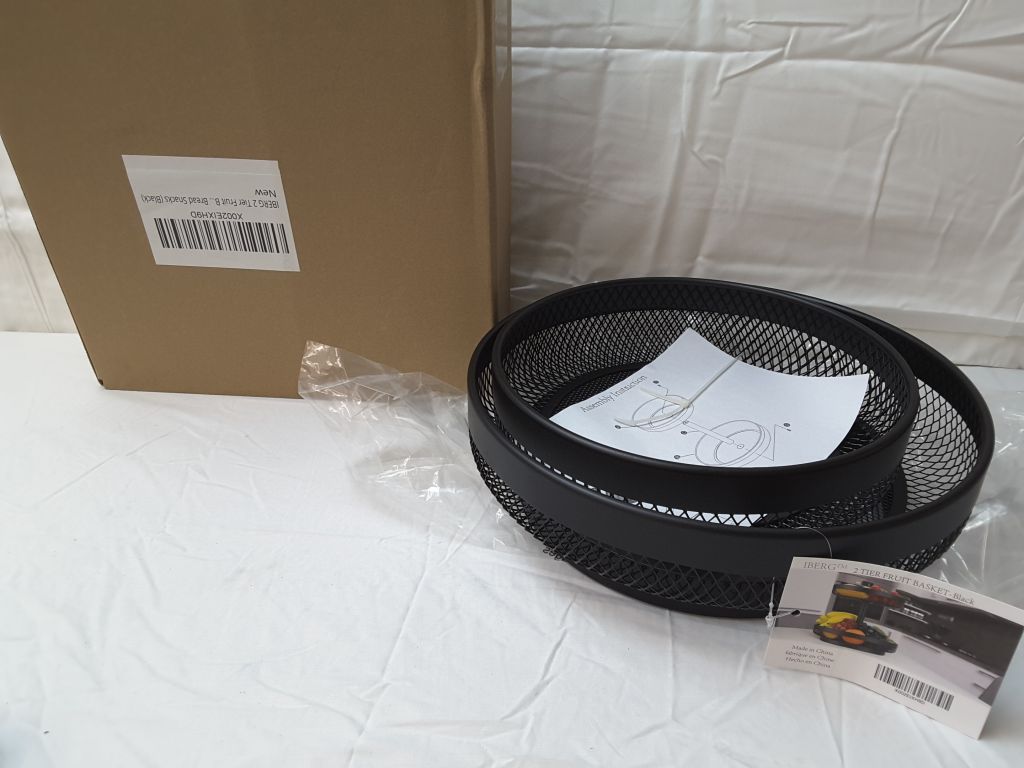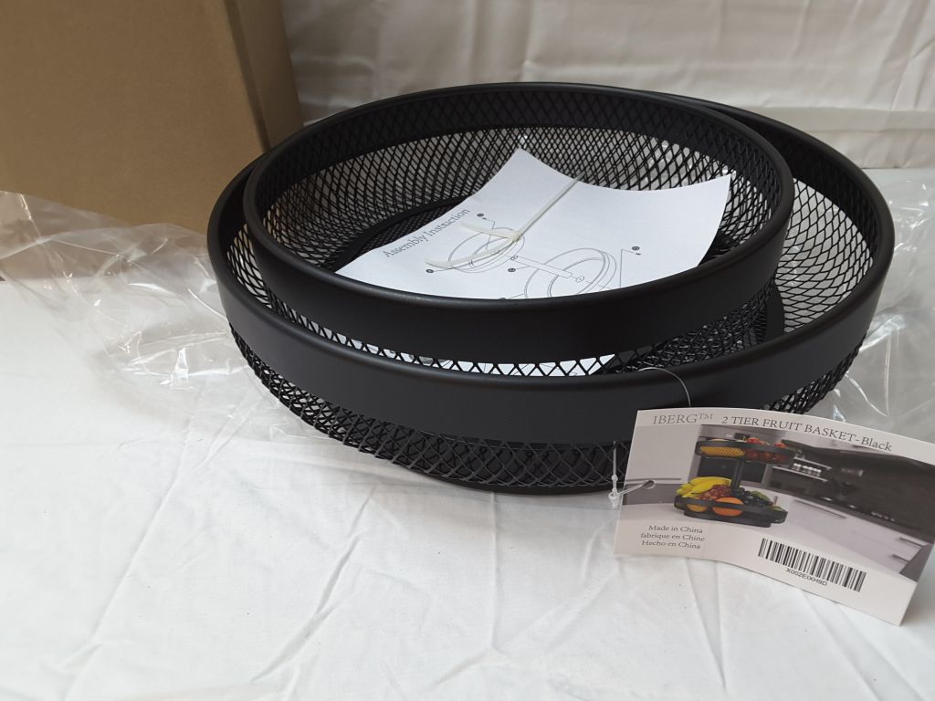 IBERG 2 Tier Fruit Basket Mesh Fruit Bowl - Basket Stand for Fruits Vegetables Bread Snacks (Black)