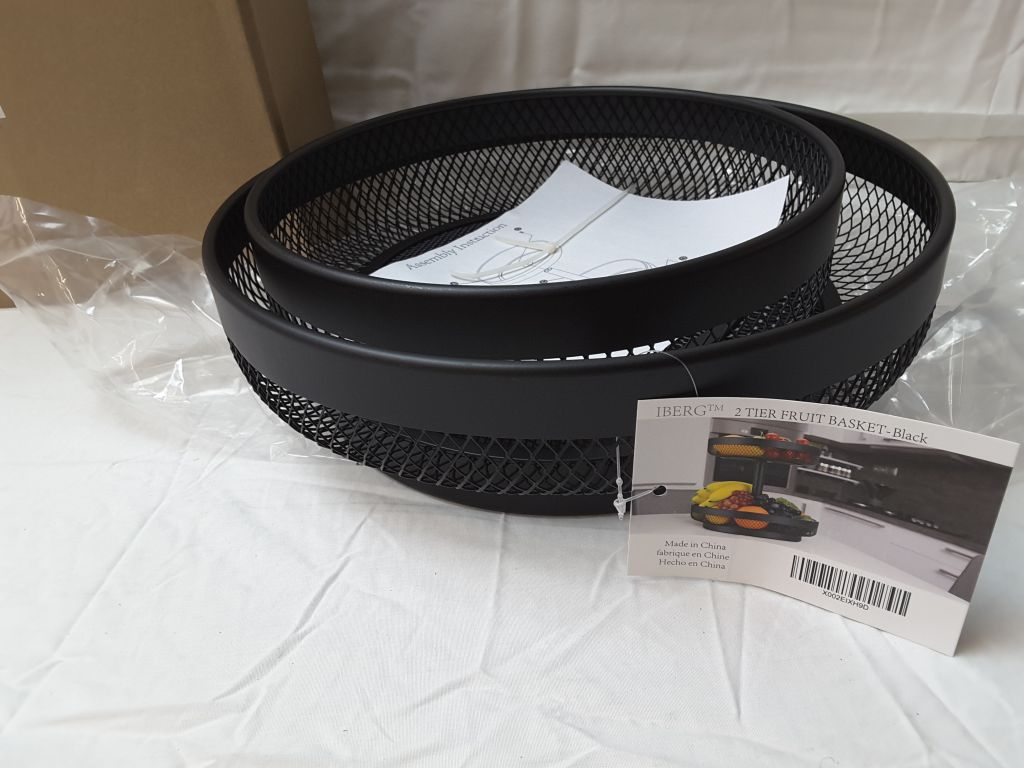 IBERG 2 Tier Fruit Basket Mesh Fruit Bowl - Basket Stand for Fruits Vegetables Bread Snacks (Black)