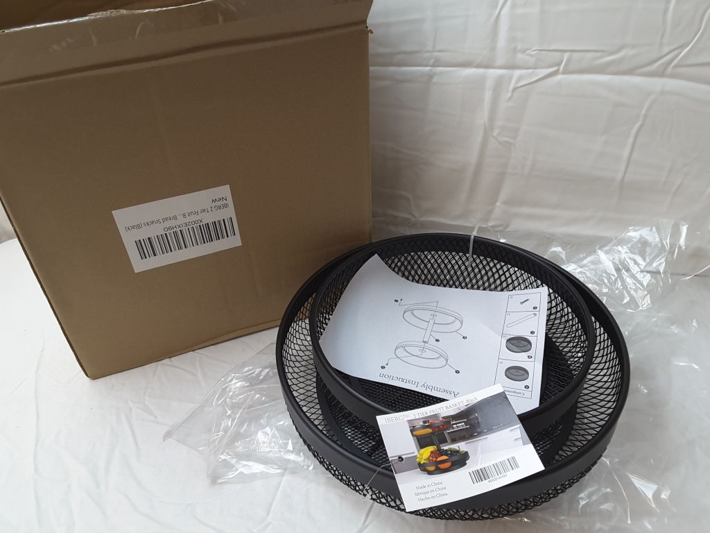 IBERG 2 Tier Fruit Basket Mesh Fruit Bowl - Basket Stand for Fruits Vegetables Bread Snacks (Black)