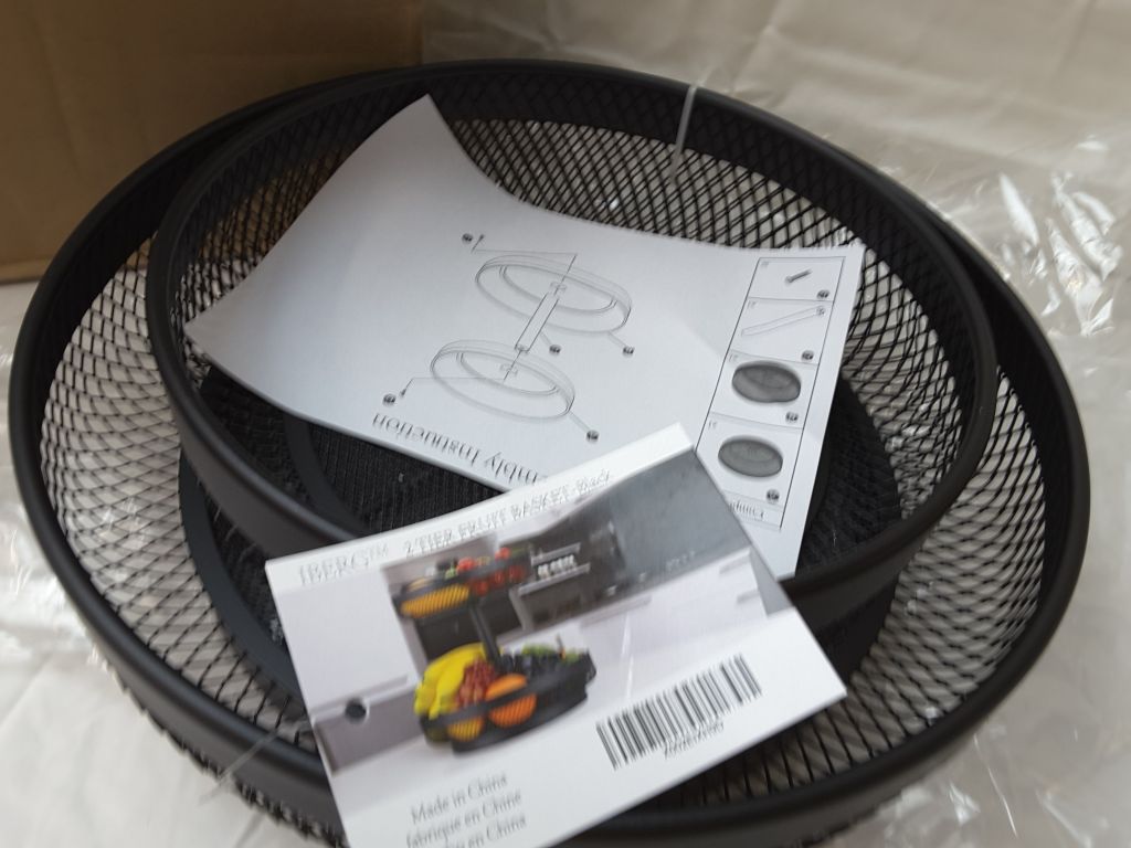 IBERG 2 Tier Fruit Basket Mesh Fruit Bowl - Basket Stand for Fruits Vegetables Bread Snacks (Black)