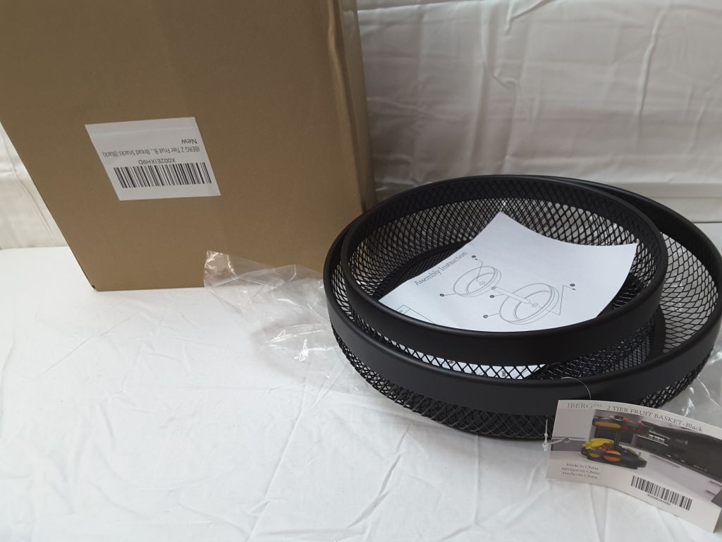 IBERG 2 Tier Fruit Basket Mesh Fruit Bowl - Basket Stand for Fruits Vegetables Bread Snacks (Black)