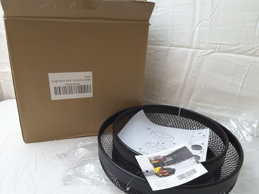 IBERG 2 Tier Fruit Basket Mesh Fruit Bowl - Basket Stand for Fruits Vegetables Bread Snacks (Black)