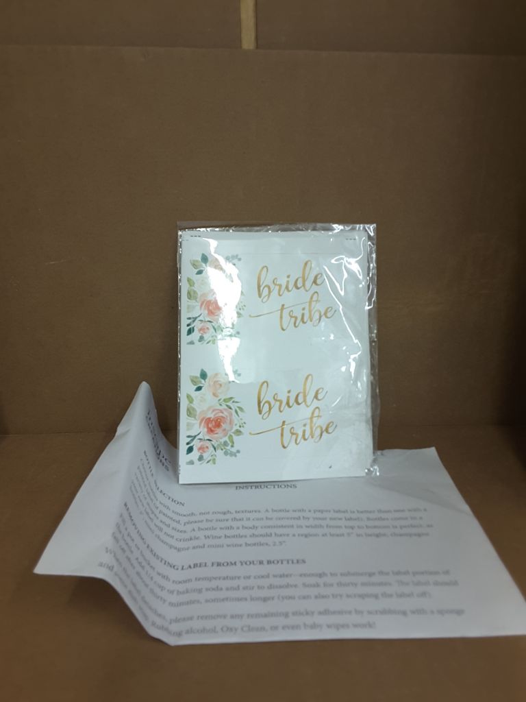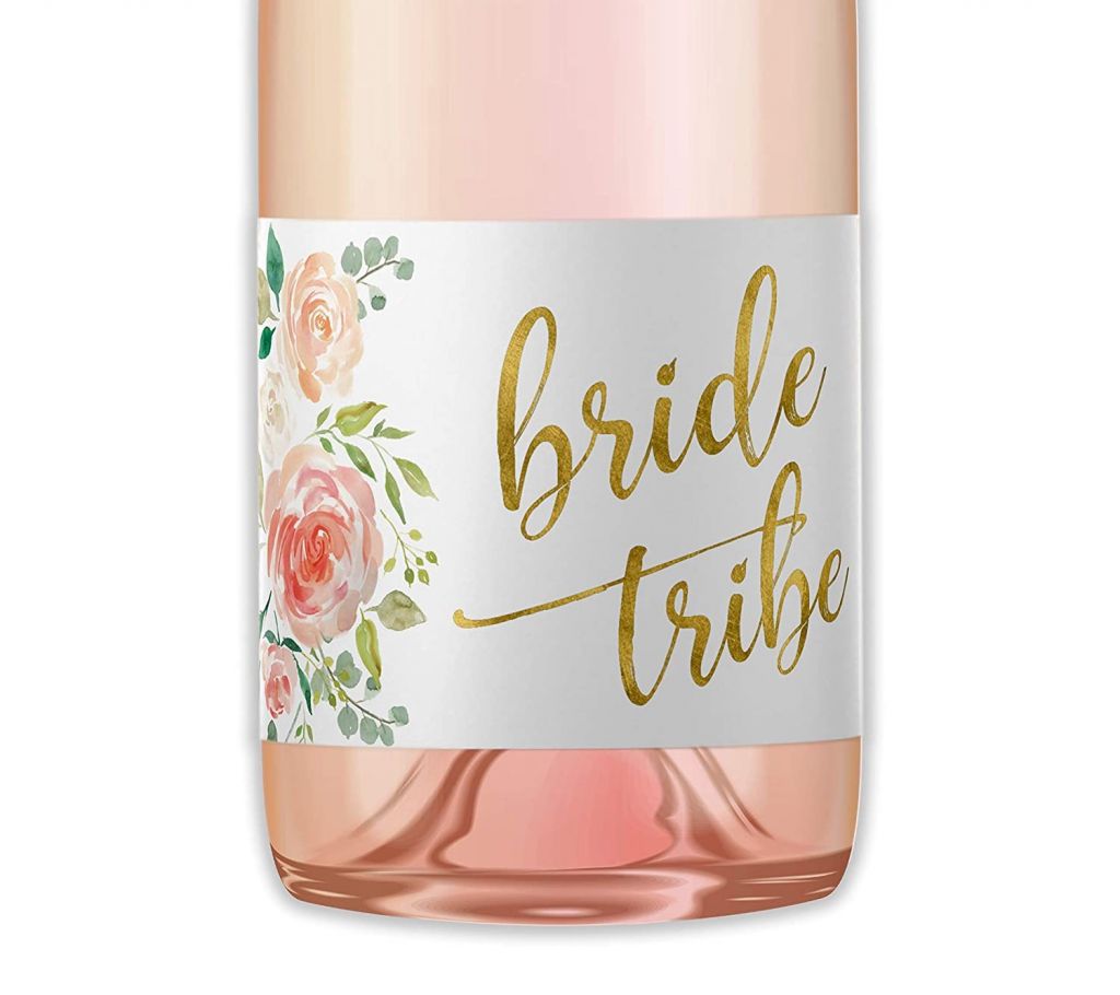 Bride tribe stickers for glass bottles and mini champagne bottles, 12 count