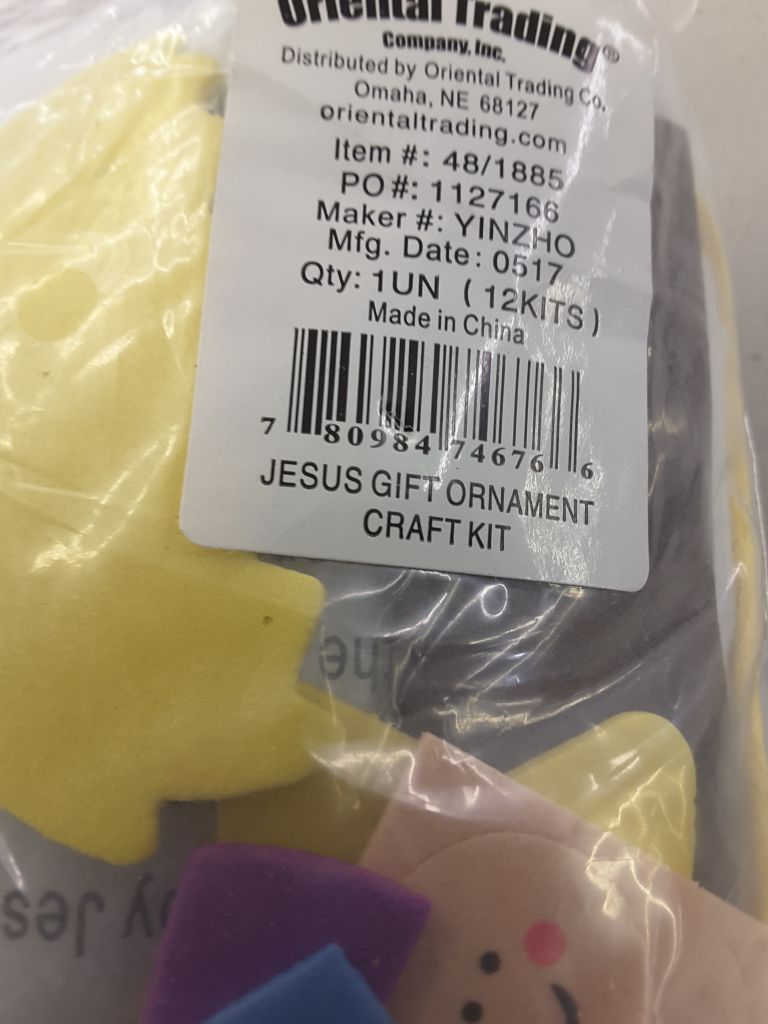 Jesus is the best gift, but these DIY ornaments make for a pretty great one too! Perfect for kids' Christmas crafts, this project features a colorful design of Mary, Joseph and baby Jesus when completed. Proud of their handiwork, little ones will love giving these to mom and dad to put on the family tree! Includes self-adhesive foam pieces and satin cords. 3 1/4" x 4" Makes 12. All craft kit pieces are pre-packaged for individual use. Kits include instructions.