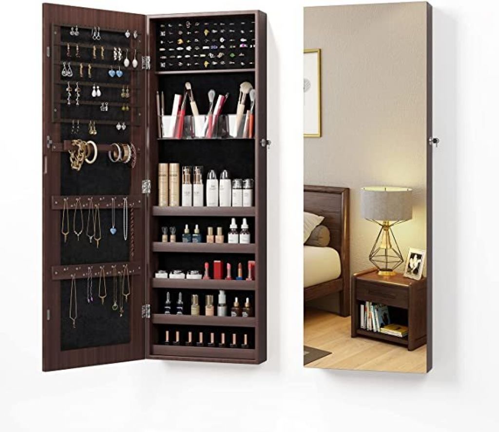 Jewelry Armoire Organizer, Lockable Borderless Jewelry Cabinet, Wall/Door Mounted Fashion Jewelry Organizer