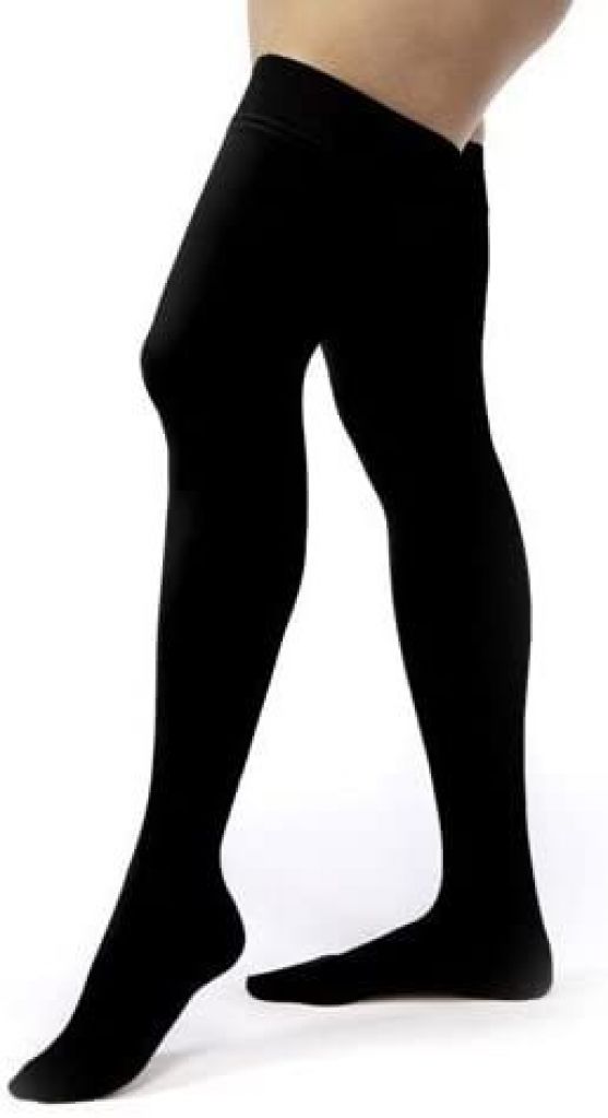 20-30 mmHg Compression Socks, Thigh High with Silicone Band, Black, Petite Large