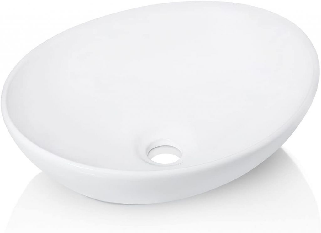 KES 16" x 13" Oval White Ceramic Vessel Sink - Modern Egg Shape Above Counter Bathroom Vanity Bowl, Made From Durable Porcelain Ceramic