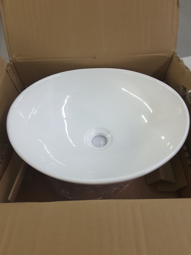 KES 16" x 13" Oval White Ceramic Vessel Sink - Modern Egg Shape Above Counter Bathroom Vanity Bowl