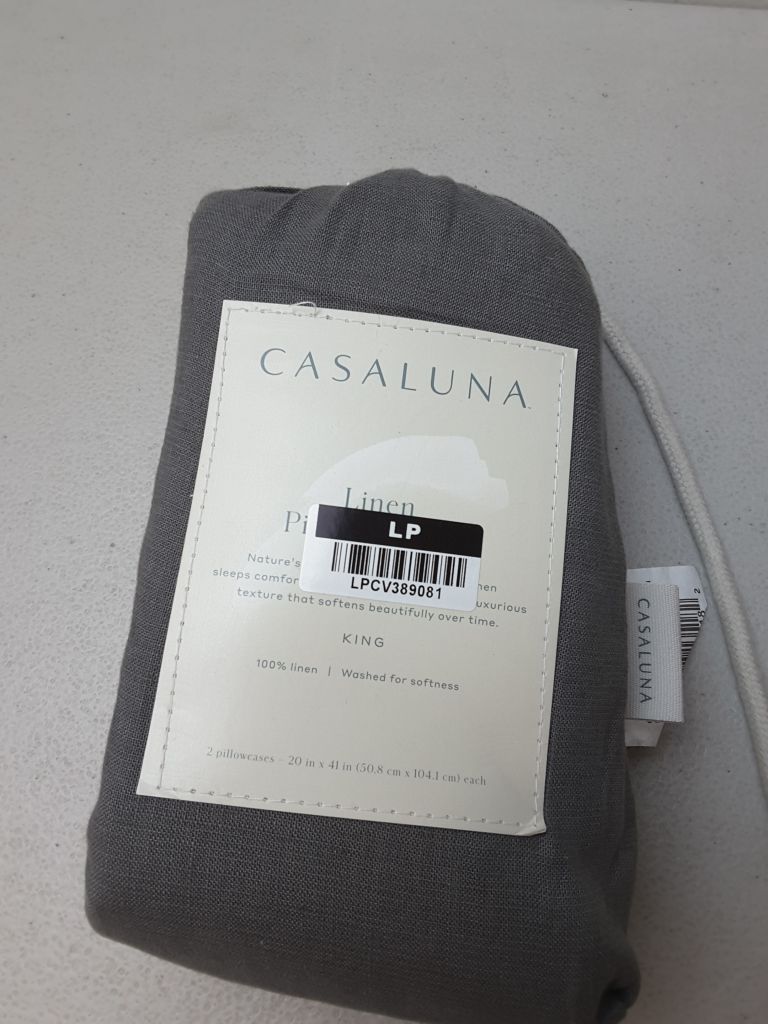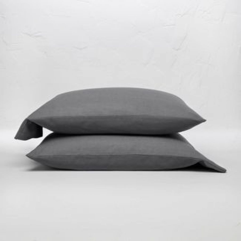 King 100% Washed Linen Solid Pillowcase Set Dark Gray - Casaluna