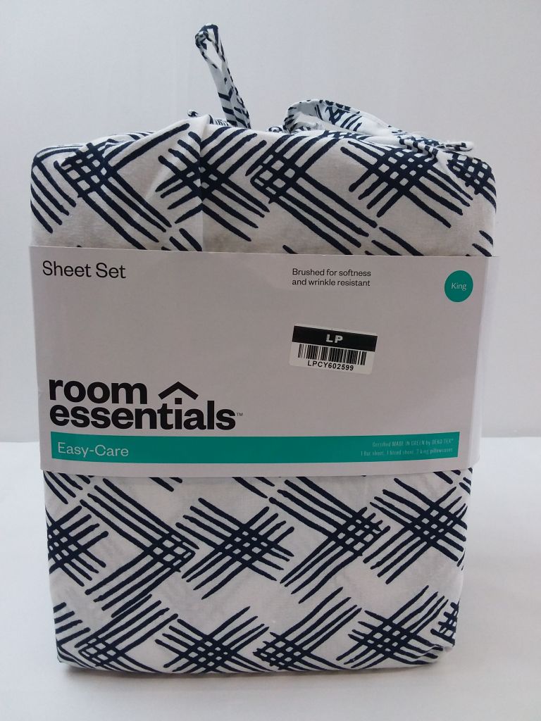 King Easy Care Printed Pattern Sheet Set Blue Geo