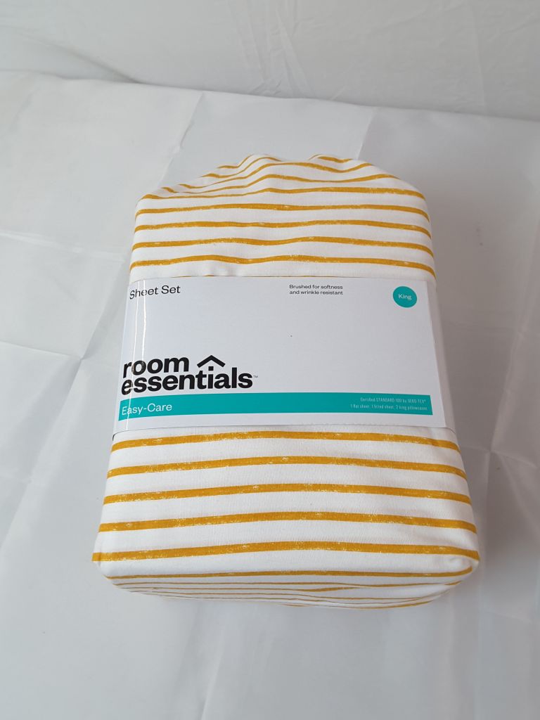 King Easy Care Printed Sheet Set Gold Stripe - Room Essentials