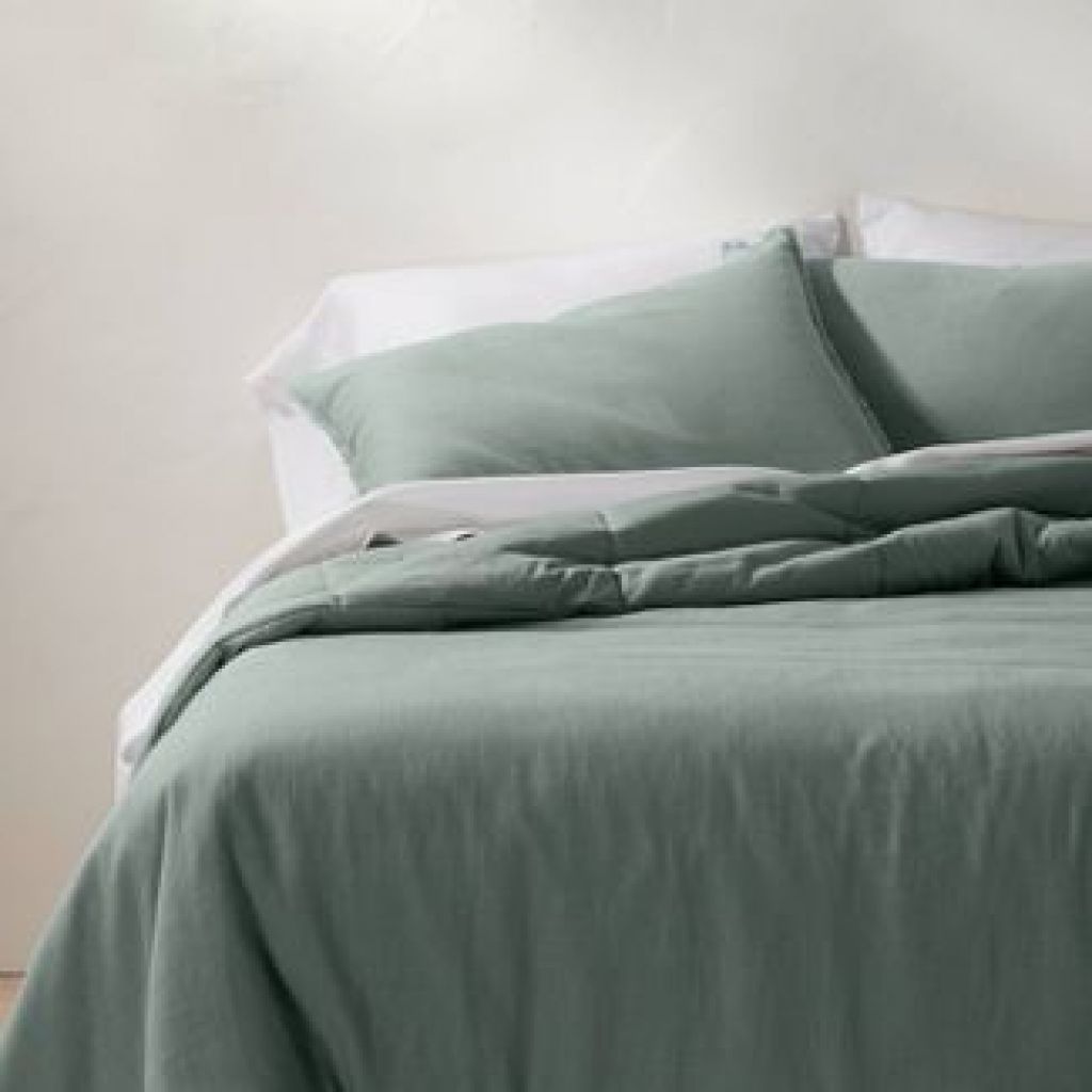 King Heavyweight Linen Blend Duvet Cover & Sham Set Sage Green - Casaluna