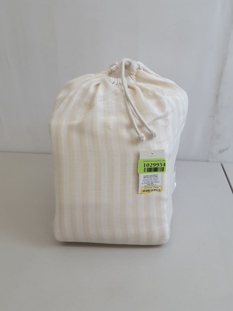 King Linen Blend Sheet Set Natural Stripe - Casaluna