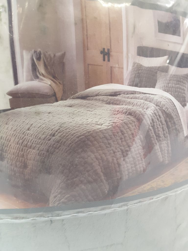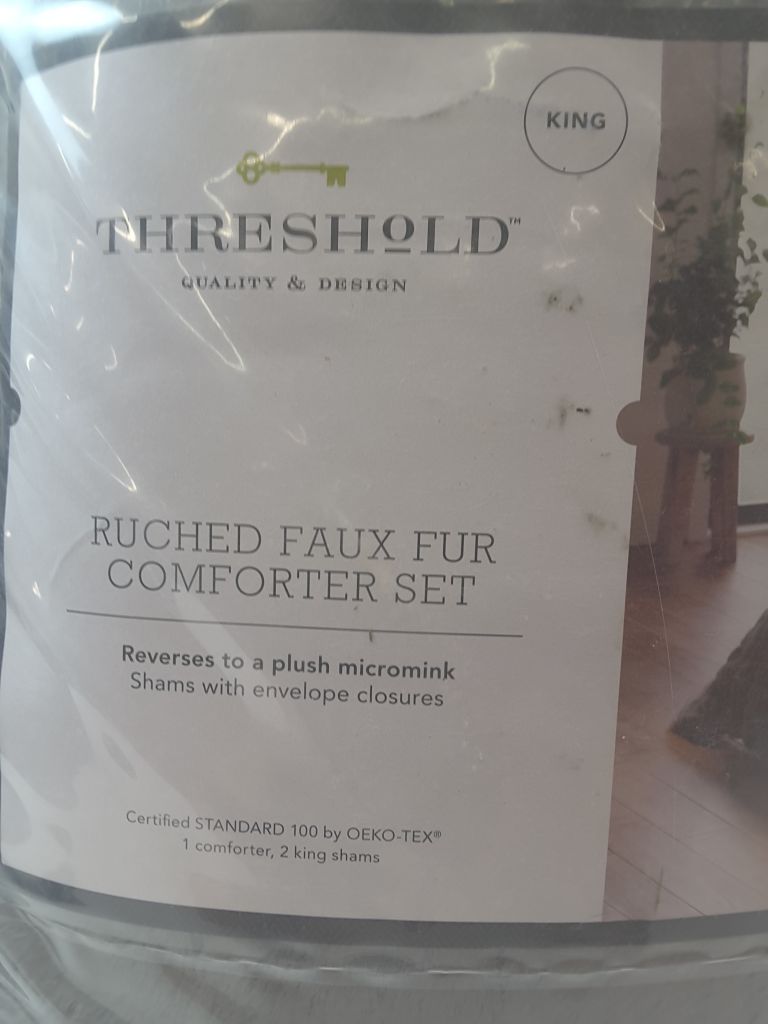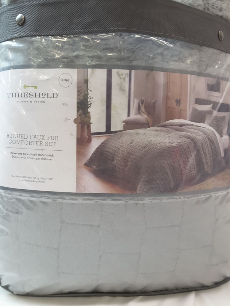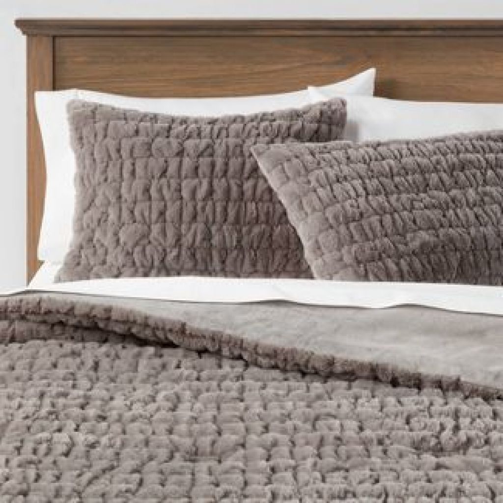 King Ruched Faux Fur Comforter & Sham Set Gray - Threshold