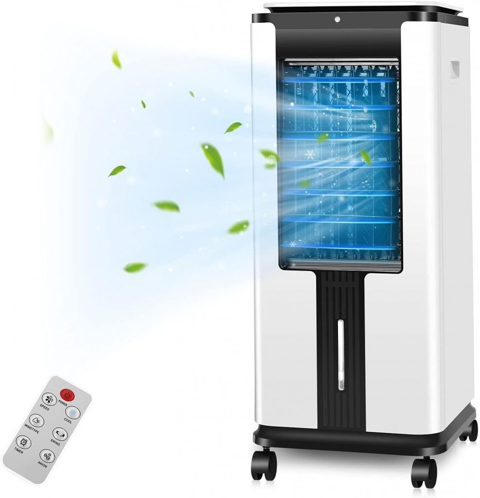 Kismile Portable Air Conditioner, Electric Air Cooler with 3 Wind Speeds, Remote Control, Built-in 12 H Timer Tower fan (White)