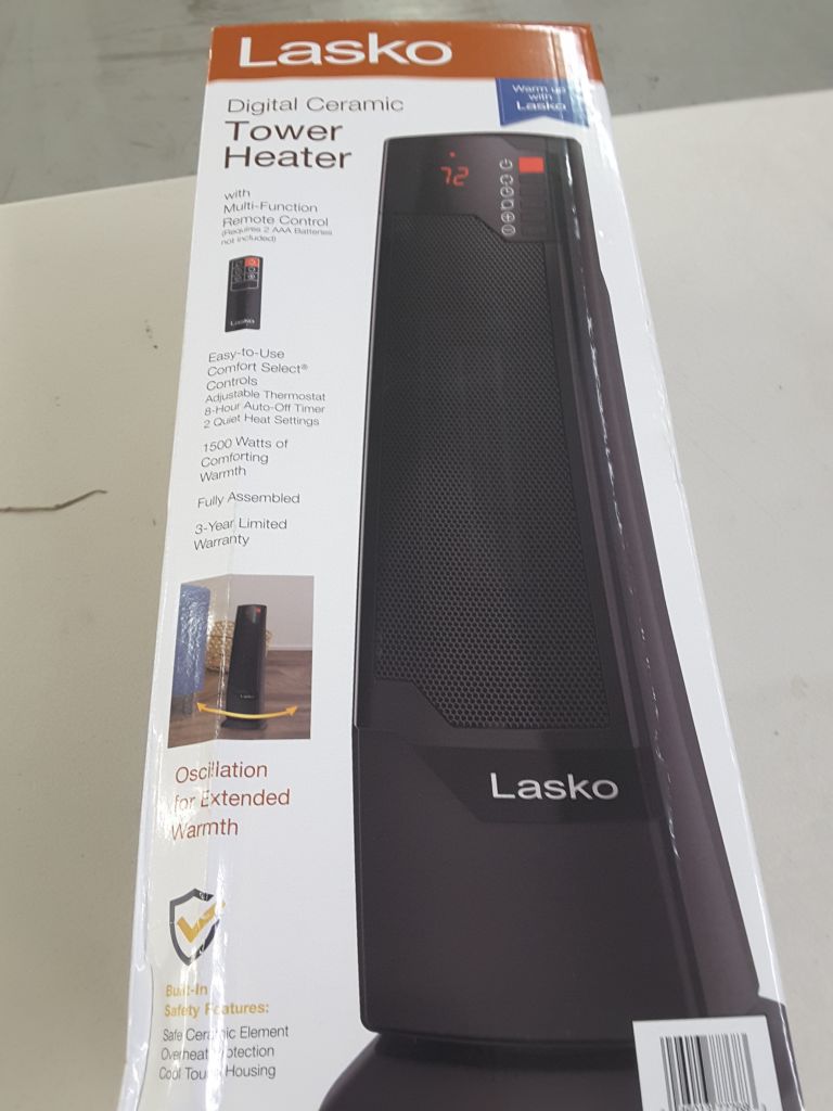 Lasko 1500W Oscillating Ceramic Tower Space Heater with Remote, CT22835, Black