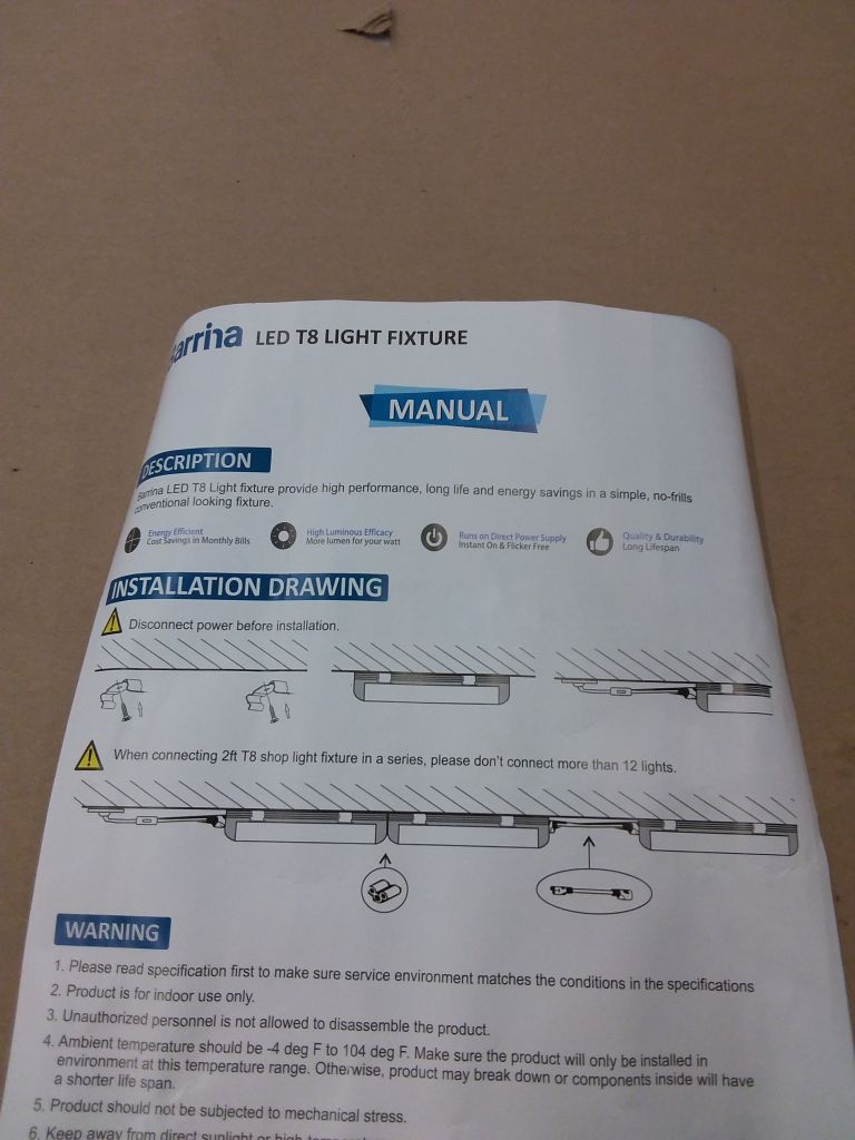 LED Shop Light 2ft 20W 2500LM 5000K T8 Fixture