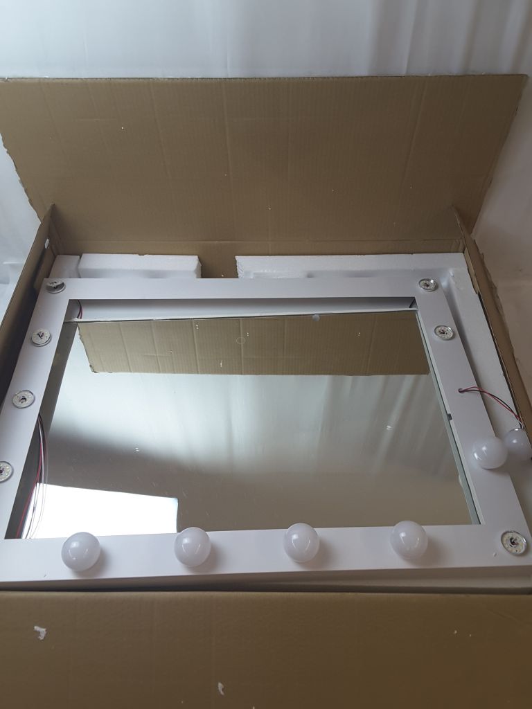Item Appears Damaged Has Holes On Side Of Mirror And Is Missing 8 Bulbs , Color: White