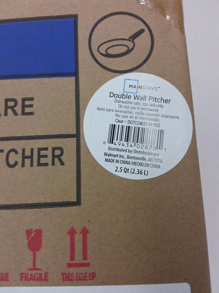 Mainstays 2.5 Quart Double Wall Clear Pitcher