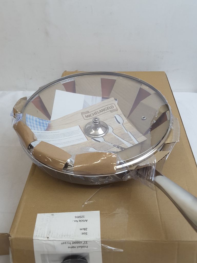 MICHELANGELO 11 Inch Frying Pan with Lid, Copper Frying Pan with Ultra Nonstick