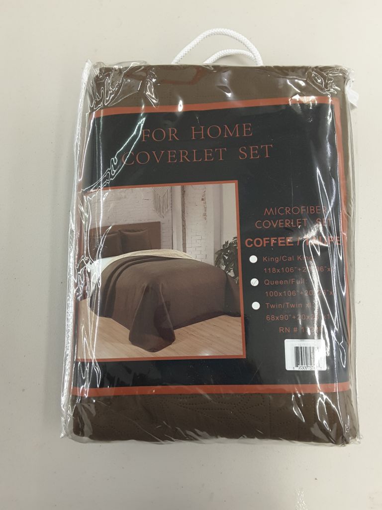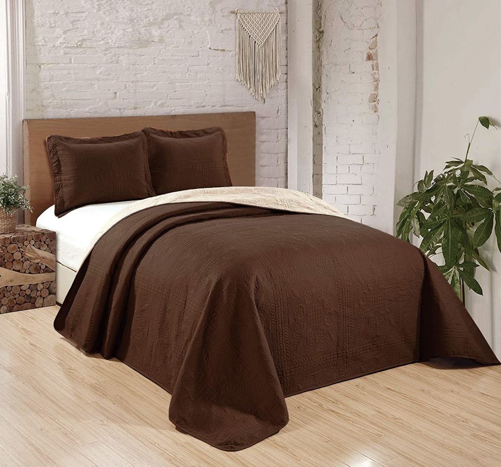 Queen/Full, Coffee/Taupe, 100" x 106". 2 Pillow Shams Included.