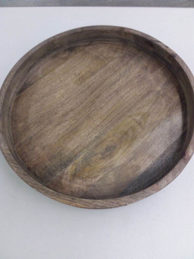 Made with Sustainable & Durable Mango Wood Burnished Iron Detail Fully Assembled 17.5" Diameter Food Safe