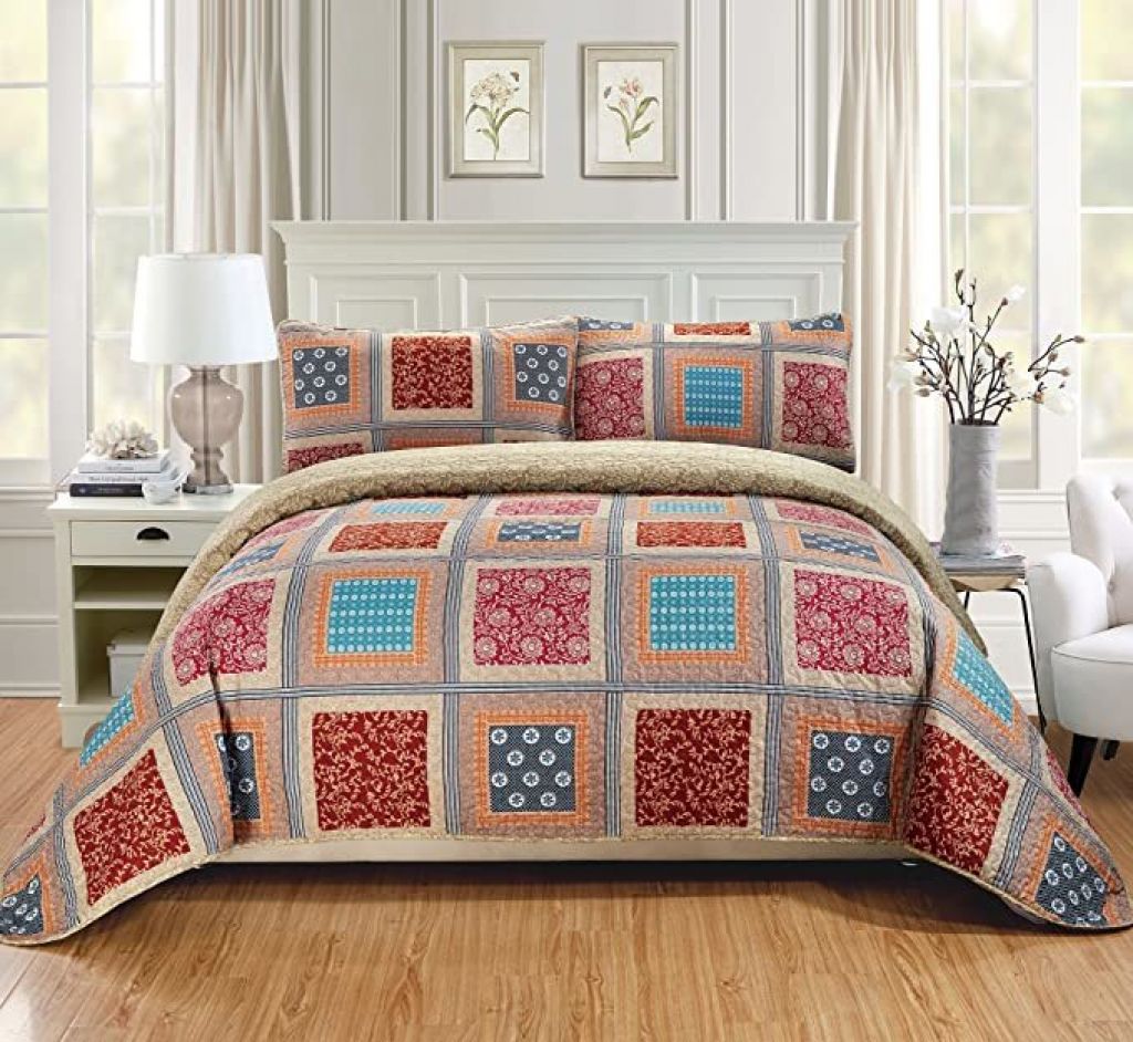 MK Home 2pc Twin/Twin Extra Long Over Size Quilted Coverlet Bedspread Set Patchwork