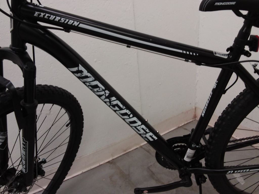 Mongoose Excursion Men's Mountain Bike, 29 inch wheels, 21 speeds, black / white