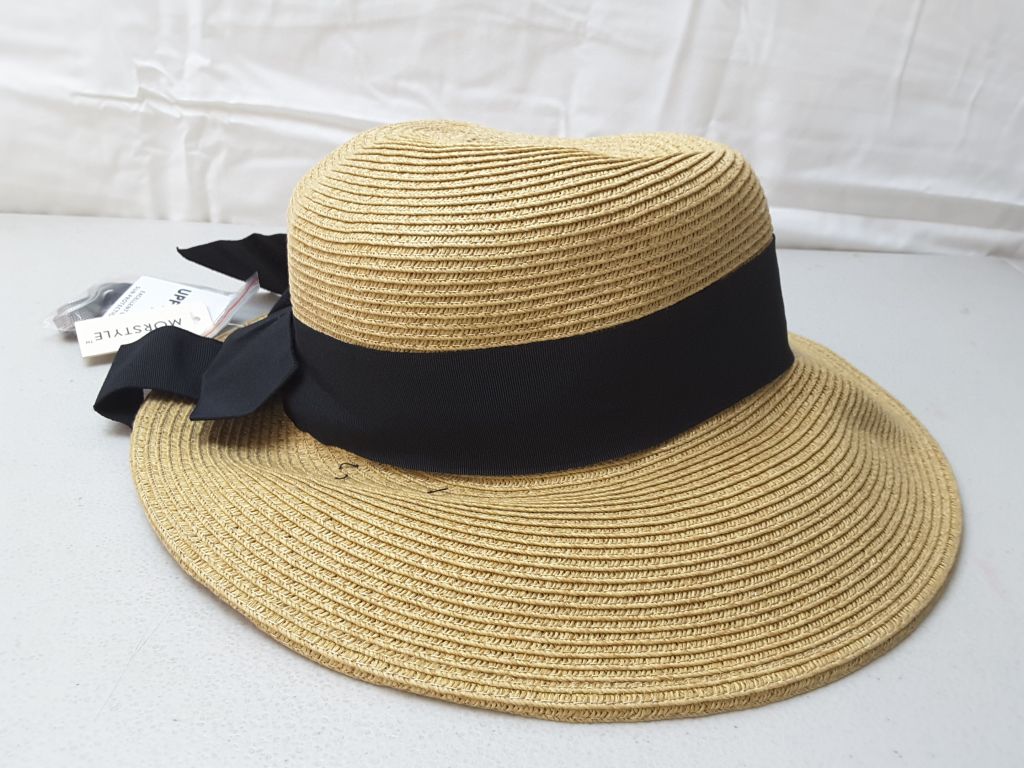 Morstyle Women Wide Brim Natural Black Ribbon Hat