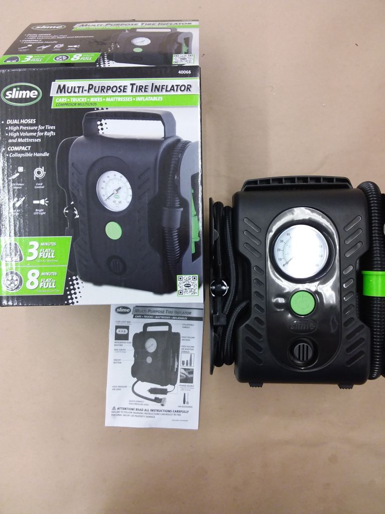 Meet the tire inflator that does it all! Slime’s Multi-Purpose Tire Inflator has two air hoses (a high-pressure hose for tires and a high-volume hose for rafts and mattresses), ensuring that all your cars, trucks, bikes