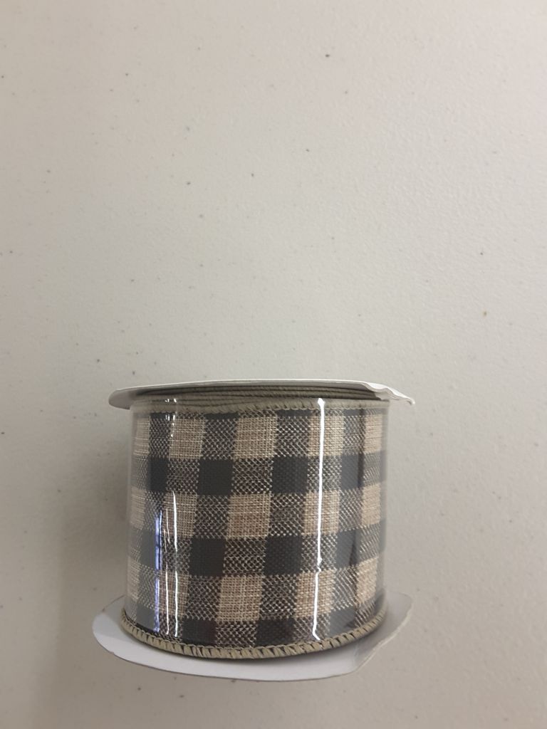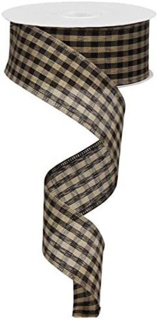 Natural Faux Jute Print Black Plaid Wired Ribbon