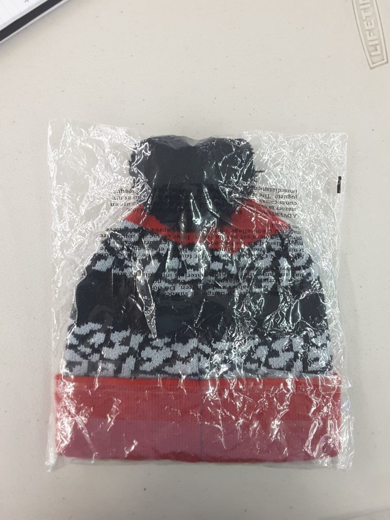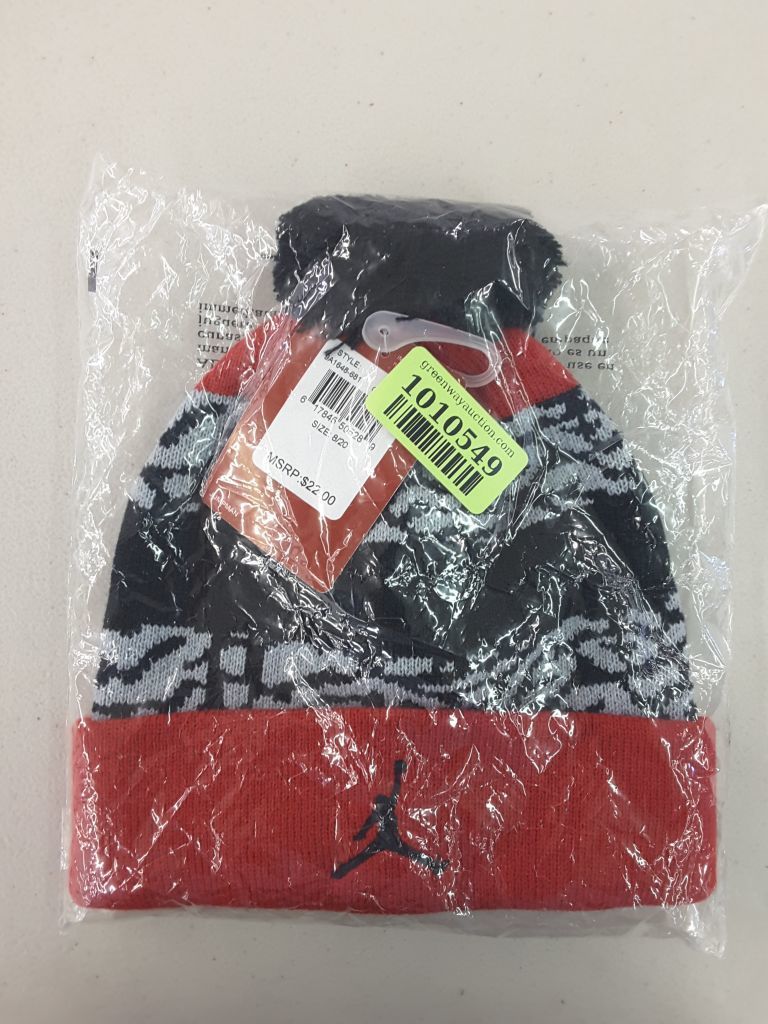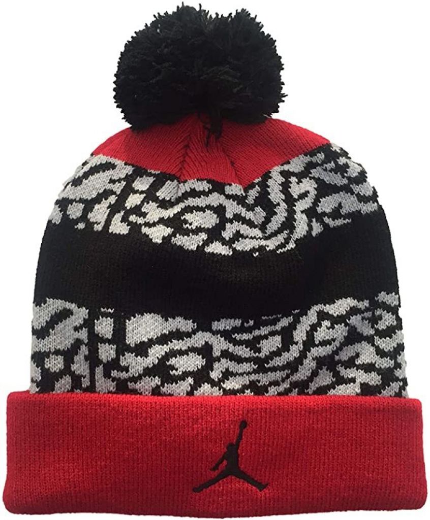 Jordan Youth's Cuff Pom Black/Red Elephant Print Beanie Hat size 8/20