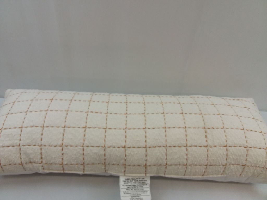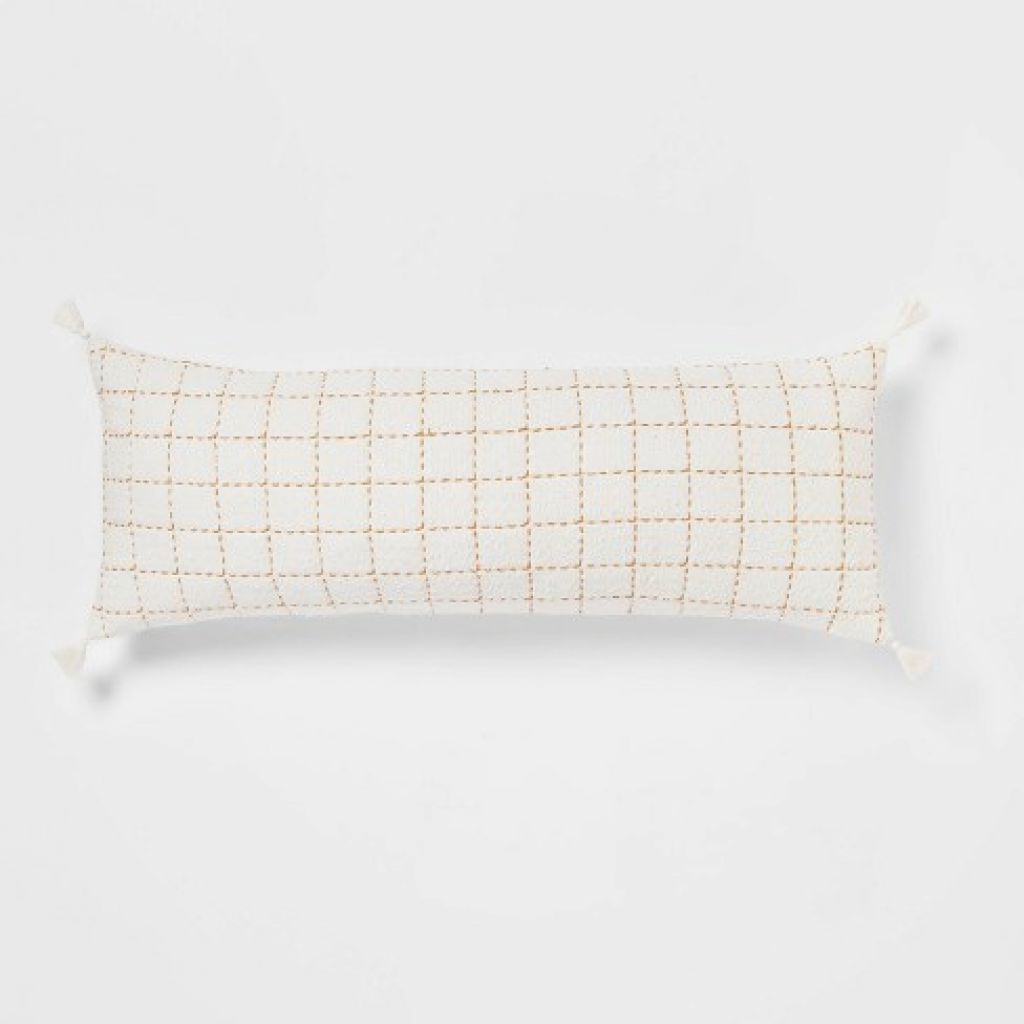 Oblong Oversized Texture Pick Stitch Plaid Decorative Throw Pillow Cream - Threshold
