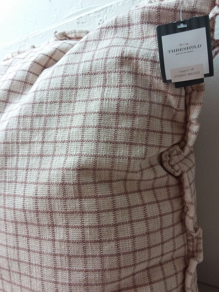 Oversized Mini Windowpane Square Throw Pillow Cream/Mauve - Threshold designed with Studio McGee
