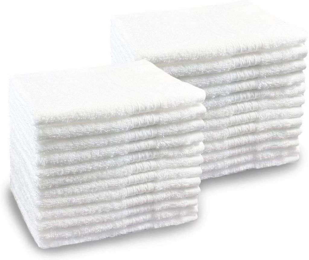 Quantity: 24-Pack Color: White 100% Cotton Towel Washcloths, Durable, Lightweight, Commercial Grade and Ultra Absorbent