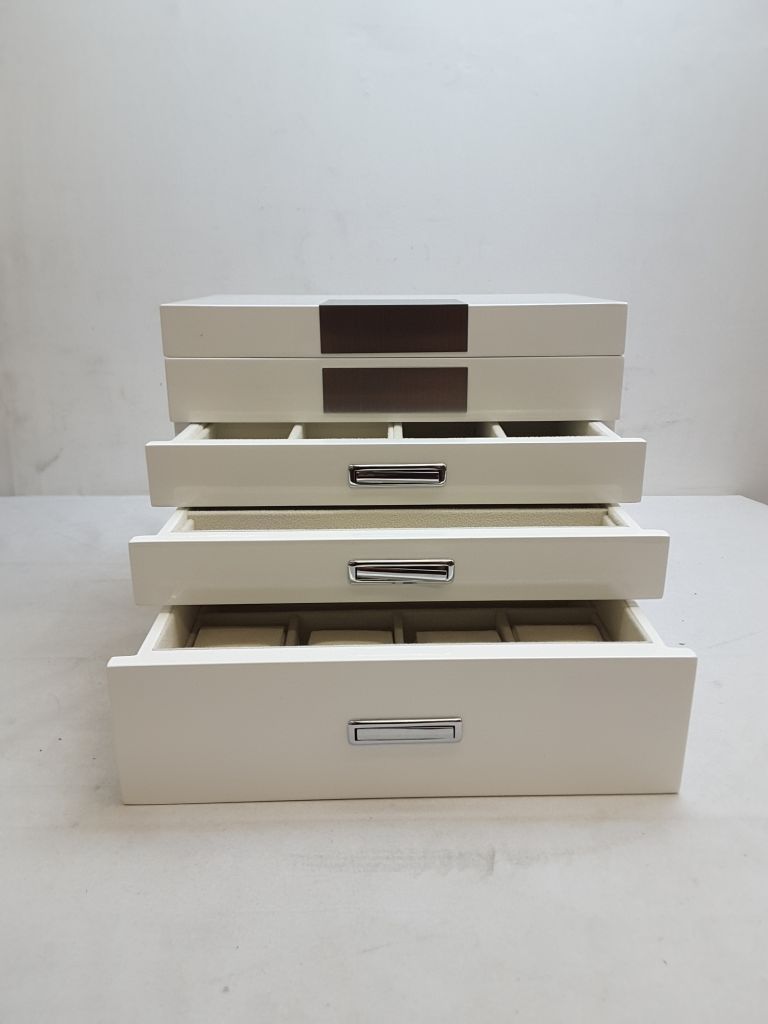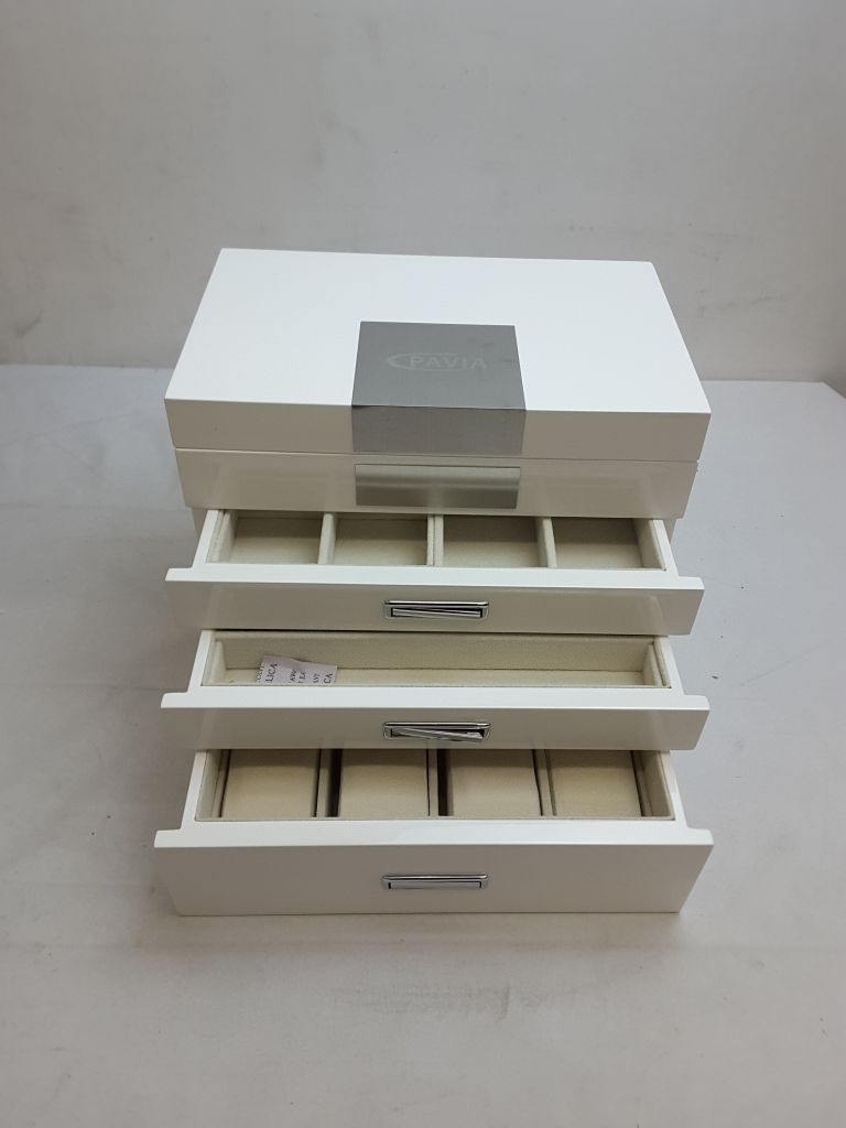 Pavia Extra Large Wooden Jewelry Box with mirror , 4-layer lockable jewelry box - White