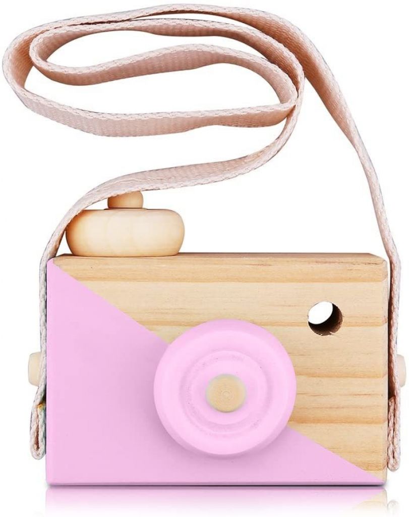 Natural Cute Wood Camera Toy with Neck Strap for Baby, Toddlers, Children. Kids Room Hanging Décor.
