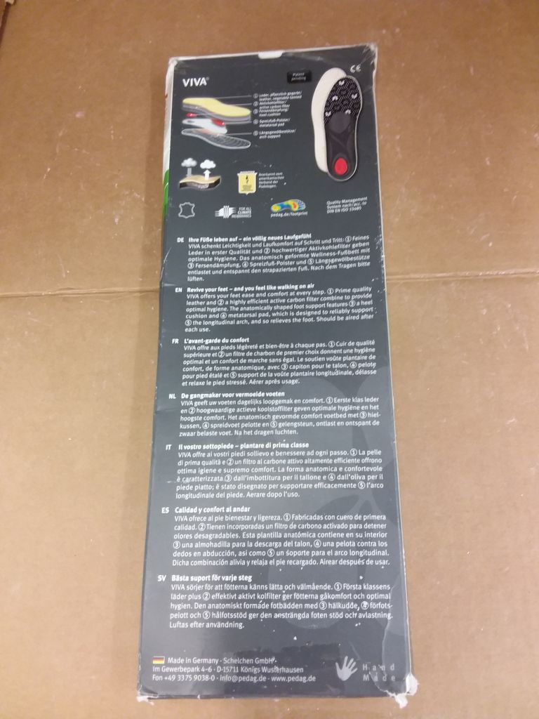 pedag Viva Universal Inserts, Handmade in Germany, Provides Superior Metatarsal and Arch, Cushions The Heel, Charcoal Odor Control, Women US 11 Men US 8 / EU 41