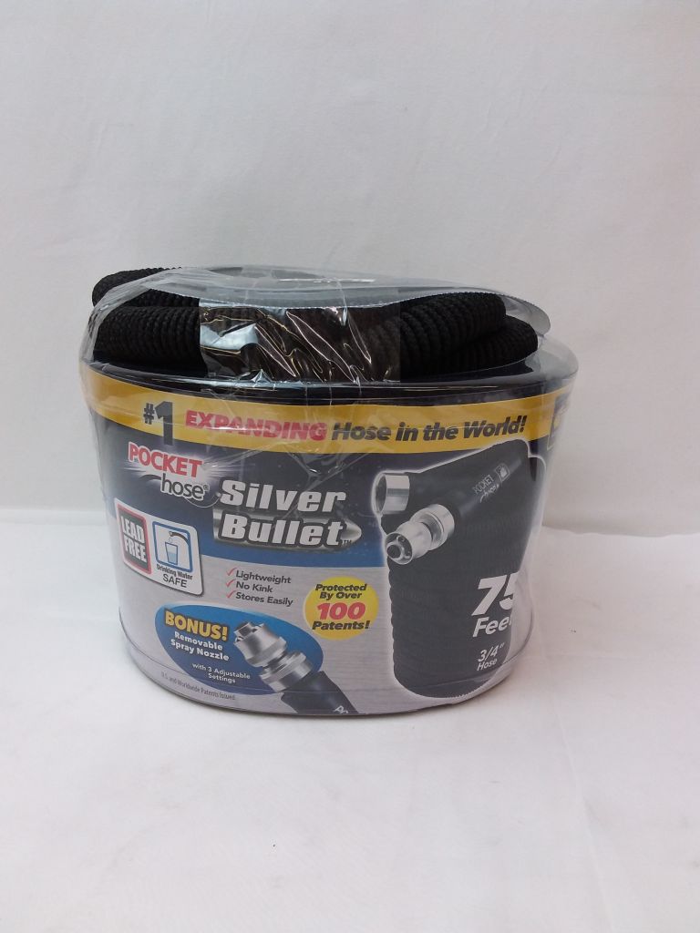 The expandable garden hose expands to a full-size water hose when you turn the water on and shrinks back down to a Pocket Hose when you turn the water off.