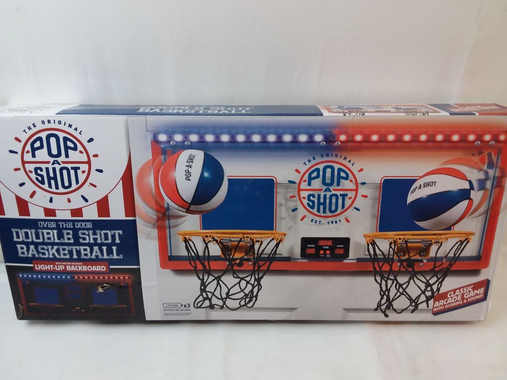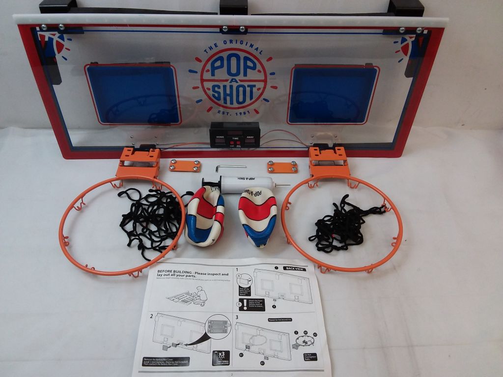 Sets Up in Seconds; Minimal Assembly Required Shatter Resistant Backboard and Heavy Duty Steel Rims Handle All the Dunks Automatic LED Scoring and Stadium Sound Effects put you In the Game! Foam Padding and Fold Up Rims Protect your Doors and Walls (3) AAA Batter