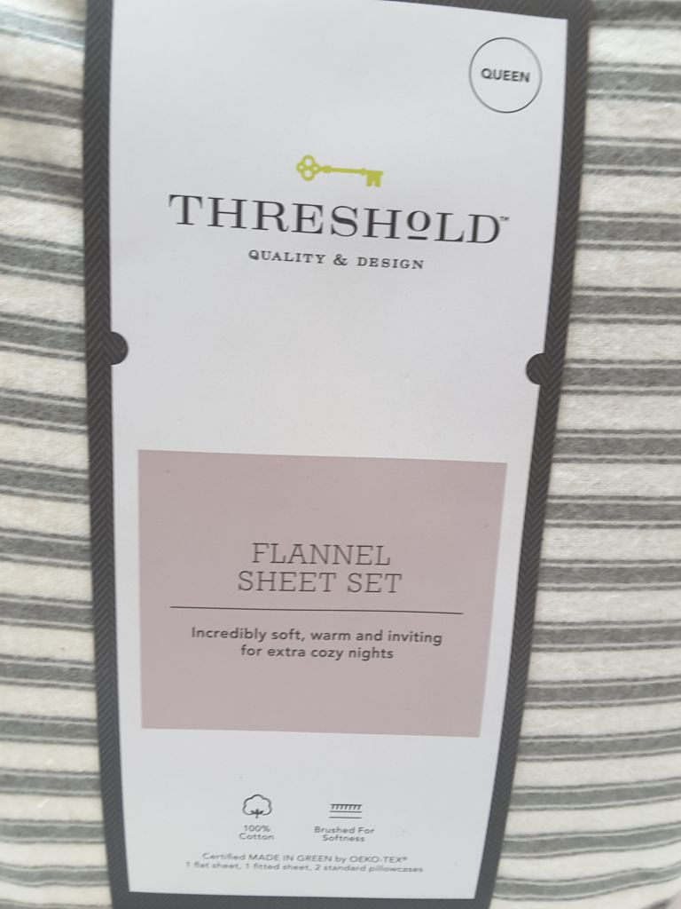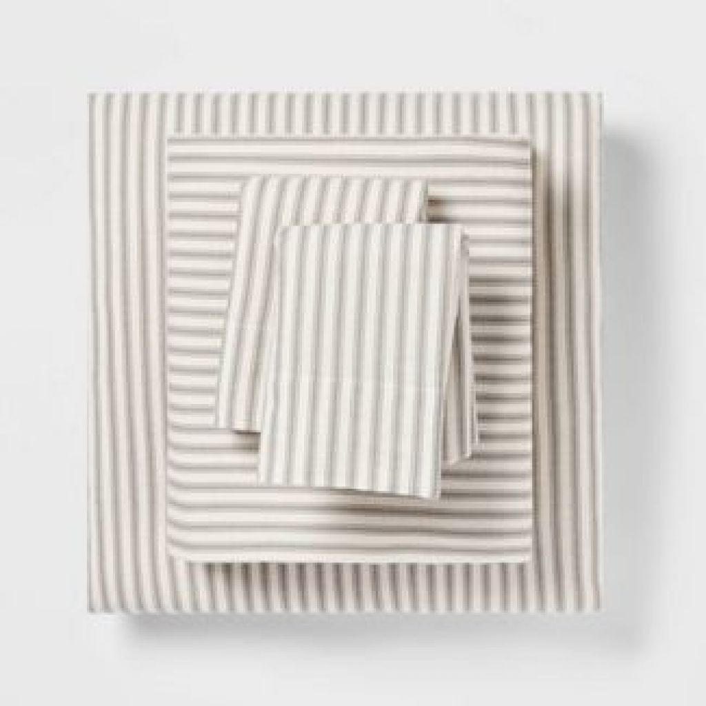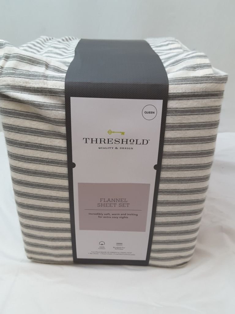 Queen Fall Flannel Patterned Sheet Set Gray Stripe - Threshold (Please be advised that sets may be missing pieces or otherwise incomplete.)