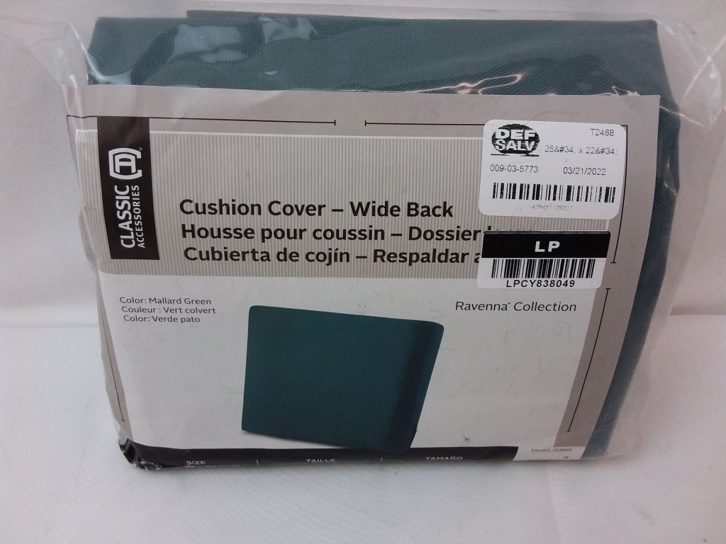 Mallard Green. Durable Outdoor Cushion Slip Cover. Measures 25"W x 22"H x 4". Thick.Locking zippers.