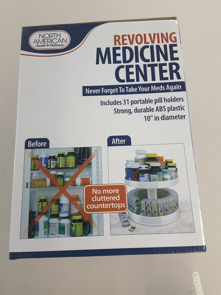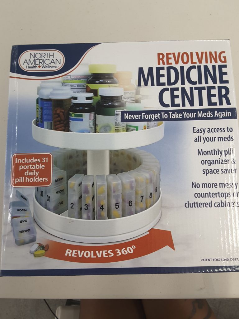 Pill Organizer, 31 pill holders, Rotates 360 degrees