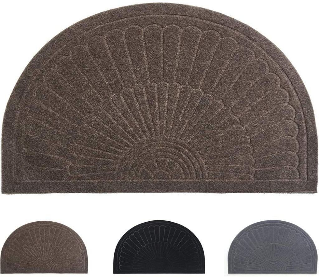 Rubber Doormat Indoor Outdoor Half Round Front Door Mat, Low Profile Welcome Mat with Non Slip Backing Absorbent Shoe Scraper Floor Mat Entry Rug, 18" X 30"