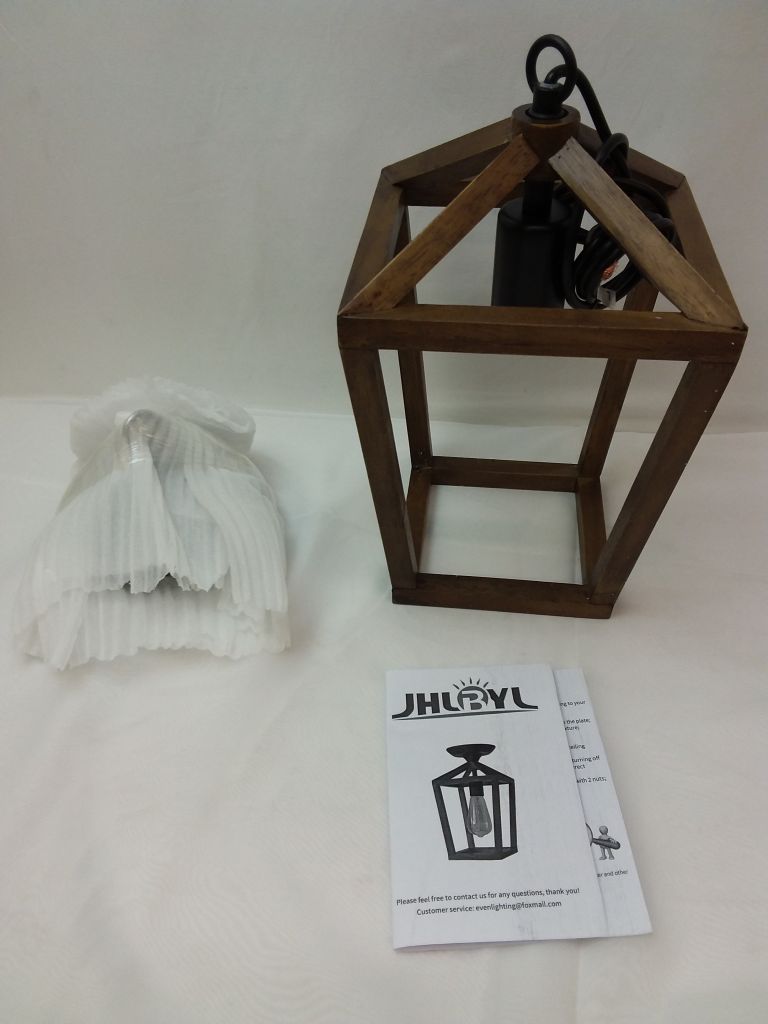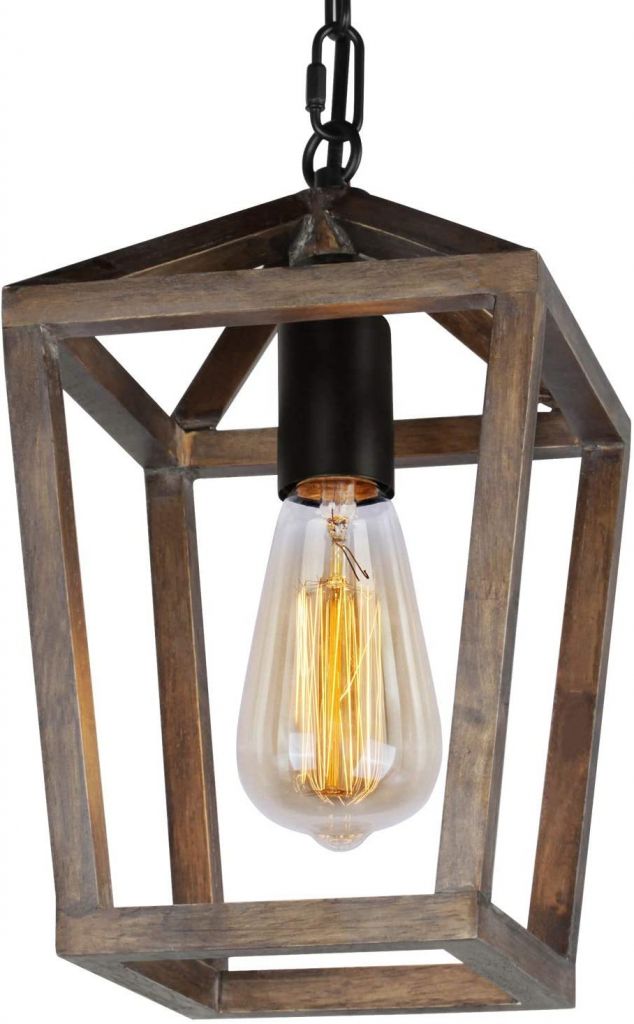 Rustic Chandelier 1-Light, Wood Cage Pendant Light Farmhouse