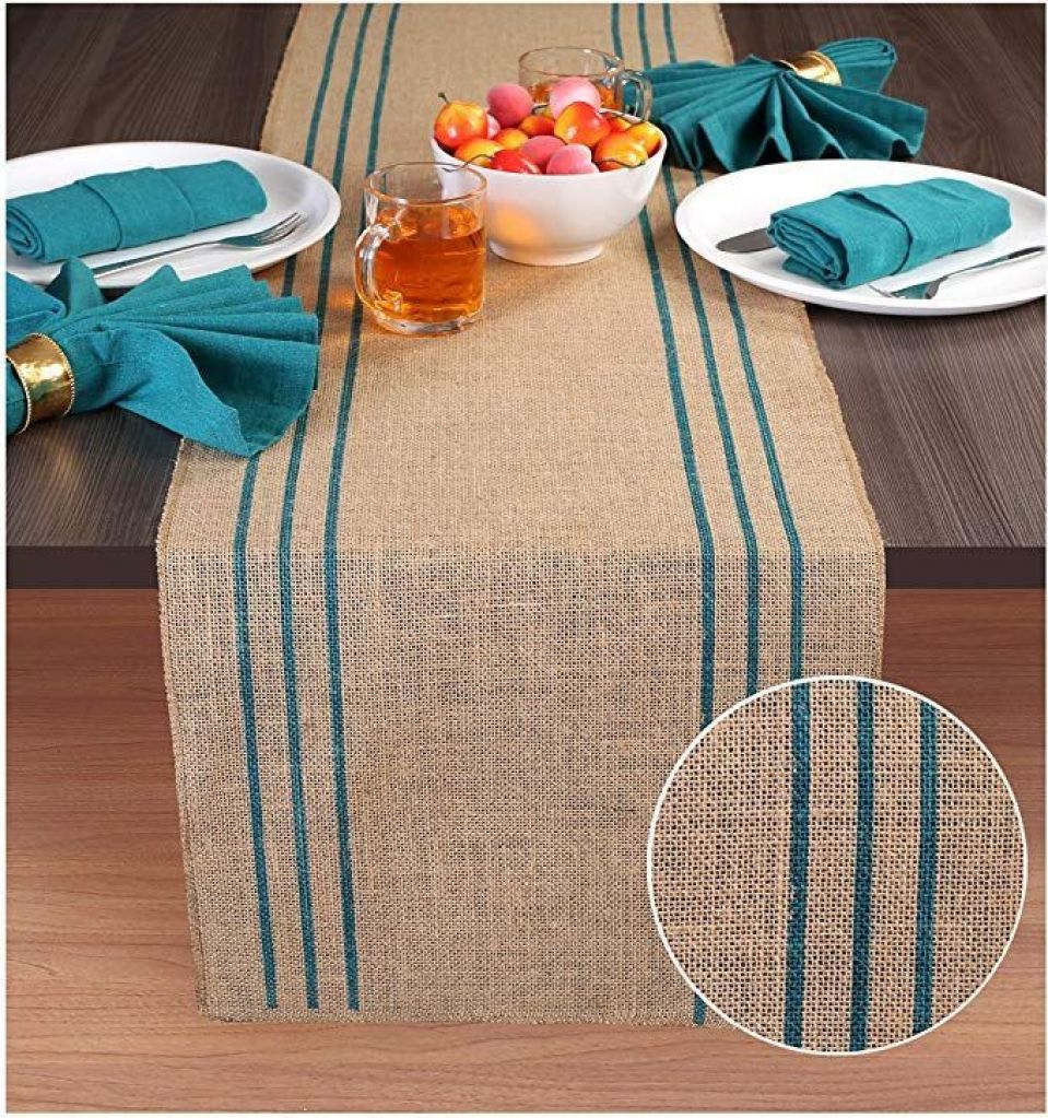 Rustic Farmhouse Stripe Burlap Jute Table Runners