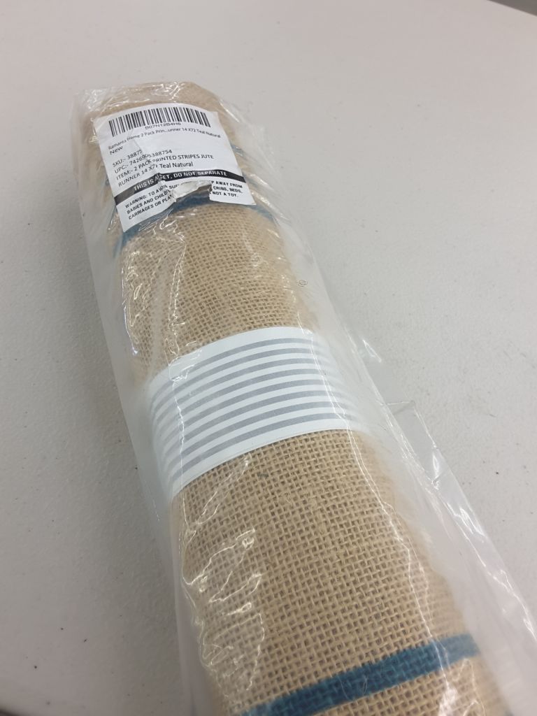 2-Pack, 14" x 72", Natural with Teal Stripe.