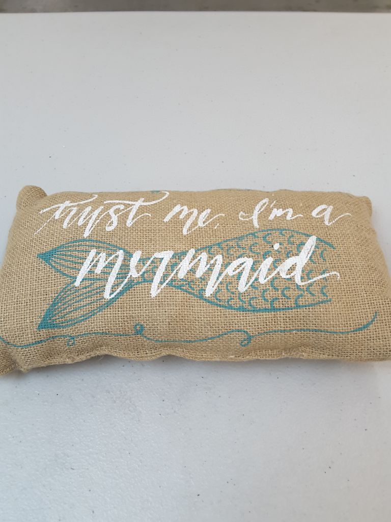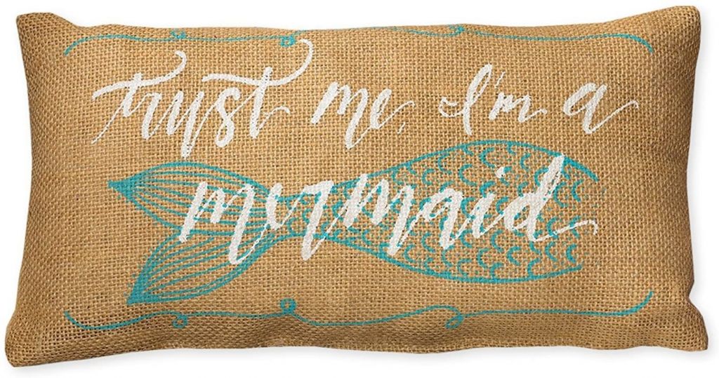 The Country House Collection Small Burlap Nautical Mermaid Pillow, 12" x 6"