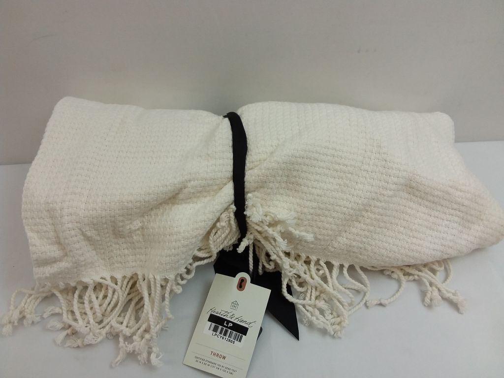 Solid Texture with Fringe Bed Throw Blanket Sour Cream - Hearth & Hand with Magnolia