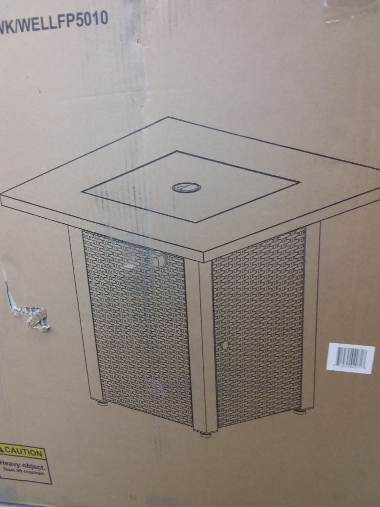 Black powder coating, steel panel for wicker look. Easy access door for propane tank exchange. Dual Function. Convert to a table when not using as a fire pit. 20lb standa...
